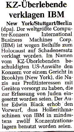 Norman Finkelstein stellt die Behauptung auf, es g�be eine "Holocaust-Industrie". Lesen Sie in diesem Zusammenhang den folgenden Zeitungsausschnitt: